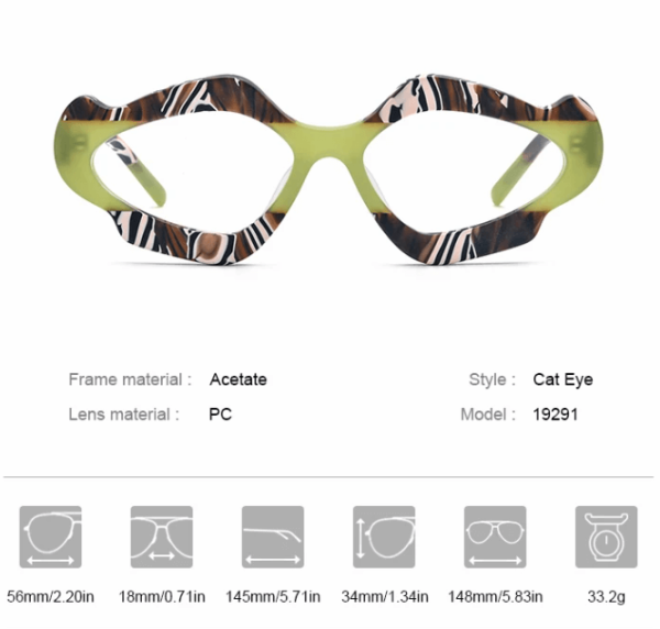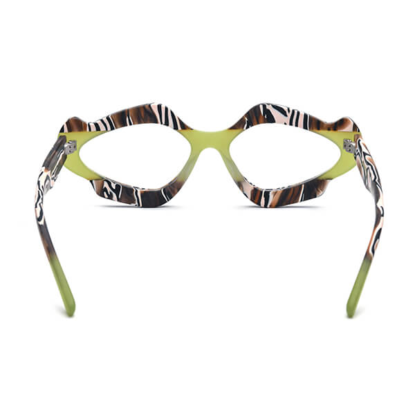 The unisex design of these acetate cat eye glasses frame is innovative, bold, and contemporary. Its versatile style transcends traditional gender norms, appealing to individuals of all genders. The bold shapes and modern aesthetics make a statement, reflecting a sense of confidence and individuality. With its daring yet chic design, this eyewear effortlessly blends fashion-forward trends with timeless elegance, making it a standout accessory for anyone seeking to make a bold fashion statement.