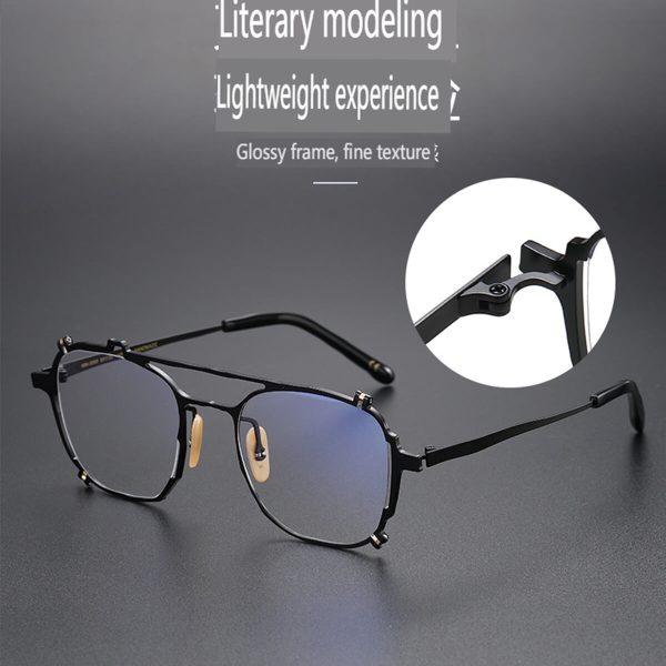 Introducing the 2024 Asterism Aviator Titanium Designer Frames, a modern reinterpretation of the iconic aviator style. Made from high-quality titanium, these frames ensure durability and lightweight comfort. Their sleek design, combined with the latest technology, enhances the classic aviator silhouette, making it an essential accessory for those with a keen sense of fashion.