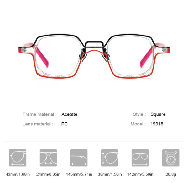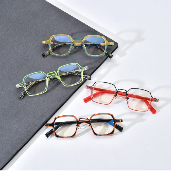 These acetate glasses frames combine vibrant yellow, grass green, orange-red, and deep black tones, offering a diverse range of style options. Each frame features a square design suitable for both men and women. Utilizing optical prescription technology, lenses can be customized to meet personalized vision needs,Exquisite craftsmanship and high-quality materials ensure comfort and durability, allowing you to showcase confidence and style.