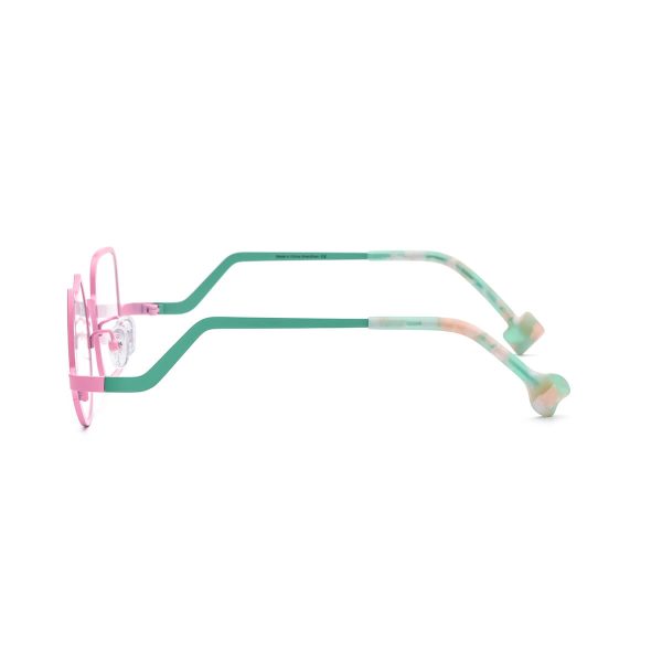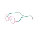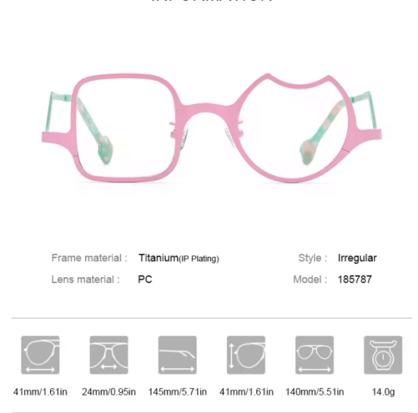 This colorful irregular pure titanium glasses frame is one of the highlights of women’s eyewear in 2023. Its most prominent feature is its unique design, with one side presenting a square shape, while the other side features a slightly concave circular top. This asymmetrical design is full of fashion and personality, showcasing the unique charm of women. The glasses frame is made of high-quality pure titanium material, lightweight and comfortable for everyday wear. The curved design of the temple arms adds to the overall aesthetic and comfort of the glasses. Additionally, premium lenses can be customized according to your prescription, ensuring a clear and comfortable visual experience. Whether for daily outfits or special occasions, these glasses will add fashion and taste to women’s looks.