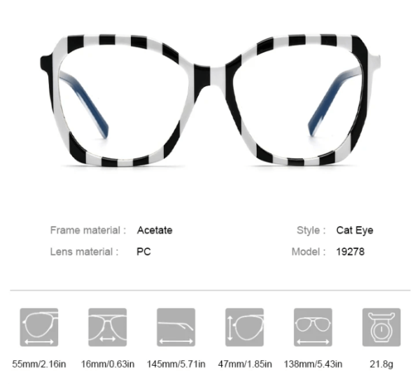 This acetate cat eye glasses frame, meticulously crafted by brand designers, exudes an elegant and fashionable style with its transparent material. Each color option is carefully selected to meet the aesthetic preferences of different individuals. From colorful stripes to captivating smokey brown classic black, and from elegant pearl white to vibrant hues, there’s a color for everyone. Whether you prefer classic or unique, these diverse color choices ensure you find the perfect glasses frame to suit your style.