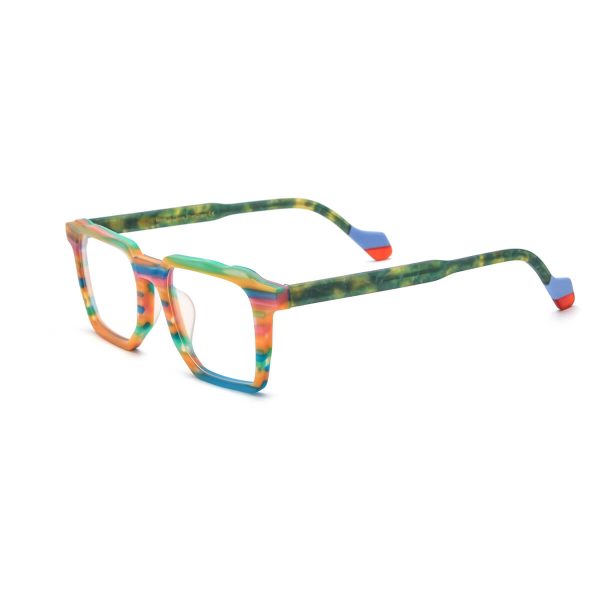 This acetate square glasses frame, with its matte finish, incorporates vibrant elements of multiple colors, showcasing a unique and innovative design. Crafted from high-quality acetate material, it exudes a contemporary charm. The addition of multiple colors adds personality and vitality to the glasses, ensuring you stand out from the crowd. Whether for everyday wear or special occasions, it allows you to express your unique taste and style.