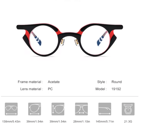 The vintage retro small round acetate glasses frame exudes timeless elegance and style. Crafted with precision and attention to detail, Its small oval shape adds a touch of sophistication to any look, Made from high-quality acetate material, it offers durability and comfort for daily wear. Elevate your eyewear game with this vintage-inspired piece that seamlessly blends retro charm with modern aesthetics.