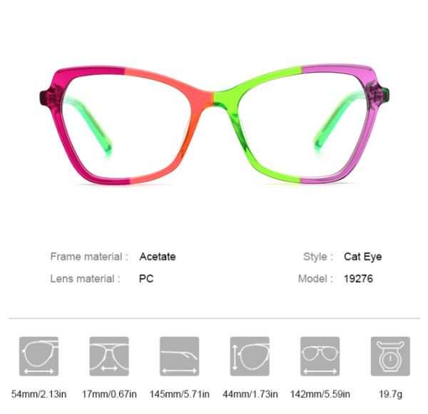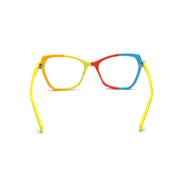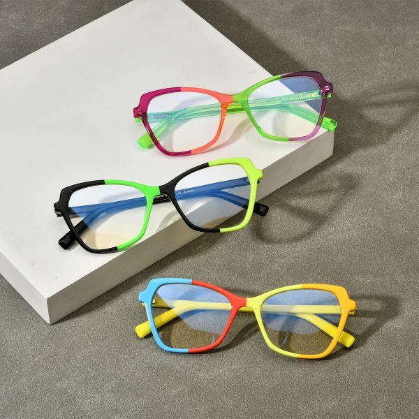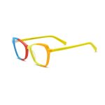 This acetate cat eye glasses frame for women, crafted by brand designers, offers three classic color options: yellow, black, and green. The transparent material showcases a clear texture, while the contrasting colors make it stand out. Whether you have myopia or require optical prescription, this glasses frame meets your needs, adding a touch of sophistication to your fashionable ensemble.