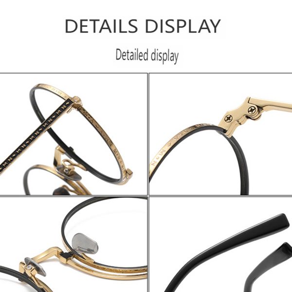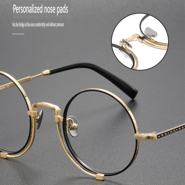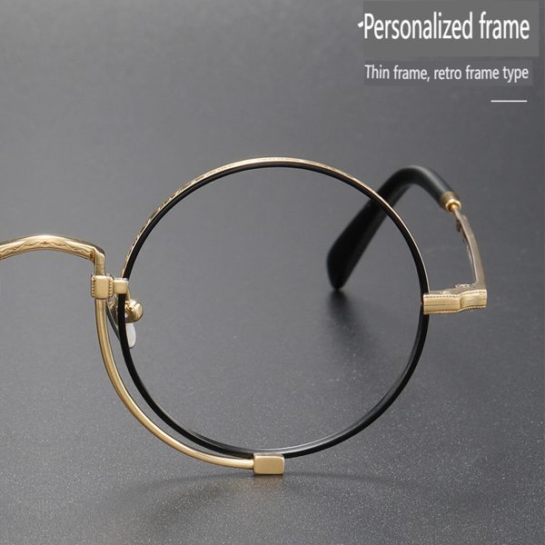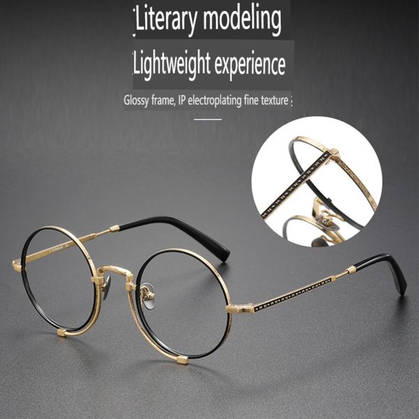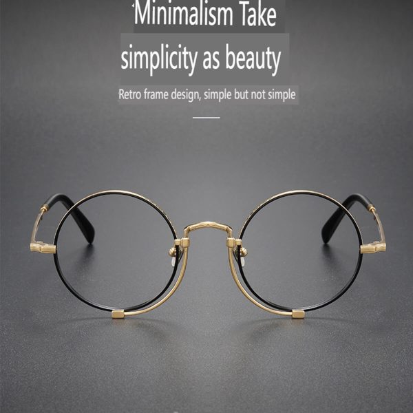 Indulge in the timeless appeal of the Horizon Vintage Round Pure Titanium Glasses. These designer frames marry a classic round shape with a modern dual-color patchwork design, creating a look that is both elegant and contemporary. Constructed from pure titanium, they are built to provide lasting comfort and durability. Their unique style makes a vibrant statement, perfect for those looking to add a touch of vogue to their wardrobe.