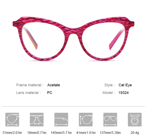 This brand designer transparent acetate cat-eye glasses frame highlights the unique charm of color and material. Crafted from high-quality transparent acetate material, it offers clarity and translucency, showcasing a modern sense of fashion. The distinctive cat-eye shape design adds a touch of elegance and personality, suitable for various occasions. These glasses are not only suitable for myopic individuals but also symbolize fashion taste, showcasing a sense of avant-garde style and taste.