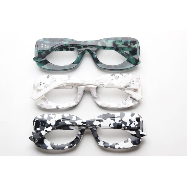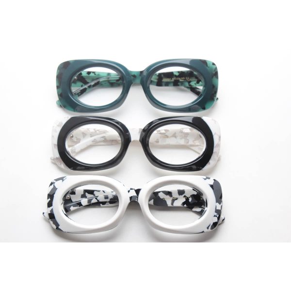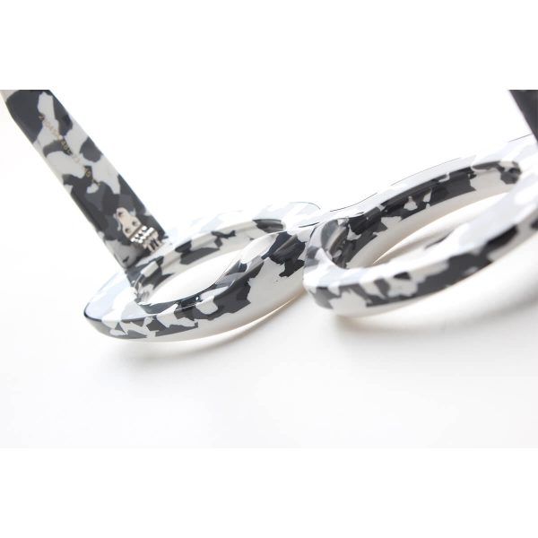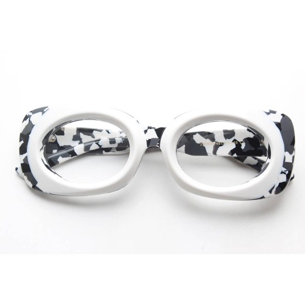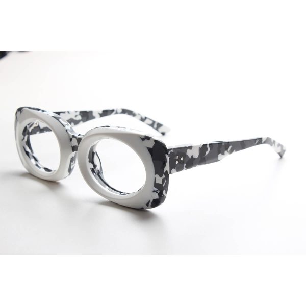 The Kennedy Acetate Oval Eyeglasses presents an impeccable blend of color schemes featuring a white front frame elegantly contrasted by a patterned black back and temples. The distinctive black and white pattern mirrors the harmony between classic and modern allure. Alternatively, for the lovers of verdant hues, a unique blend of deep green and light green patterns awaits. This color palette, reminiscent of a serene forest, breathes life into your style. Each pair is a testament to tasteful design, merging comfort with high fashion. Whether you choose the stark beauty of black and white, or the calming tones of deep and light green, these eyeglasses assure a striking yet refined look.