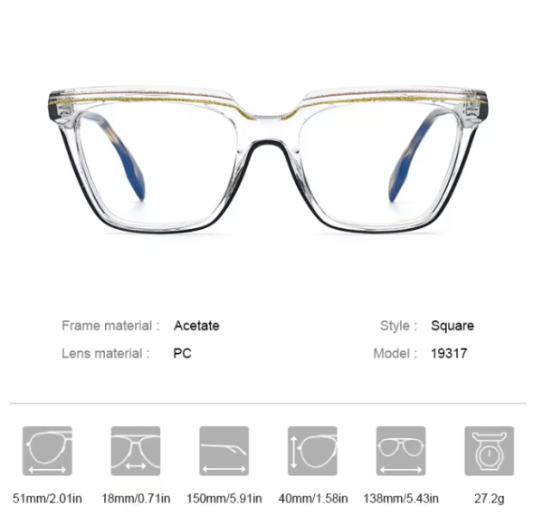 This powder acetate glasses frame, suitable for both men and women, features a retro square design, ideal for optical prescription and myopia eyewear. Its classic appearance blends modern fashion elements, offering durability and style. Whether for daily wear or accessorizing, it highlights individuality and taste.