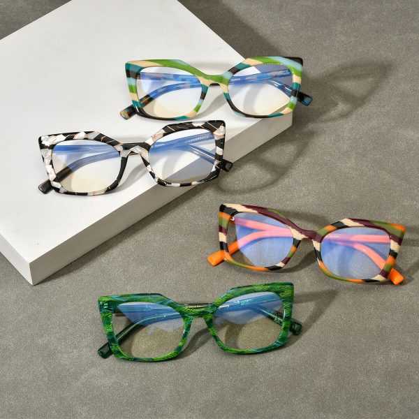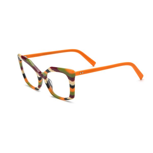 This brand designer transparent acetate cat eye glasses frame combines fashion with uniqueness, showcasing a distinctive style. Designed for optical prescription eyewear for myopia, it offers classic blue, orange, brown and black options, as well as transparent lattice patterns. Whether for everyday wear or special occasions, this eyewear frame accentuates your personality and taste.
