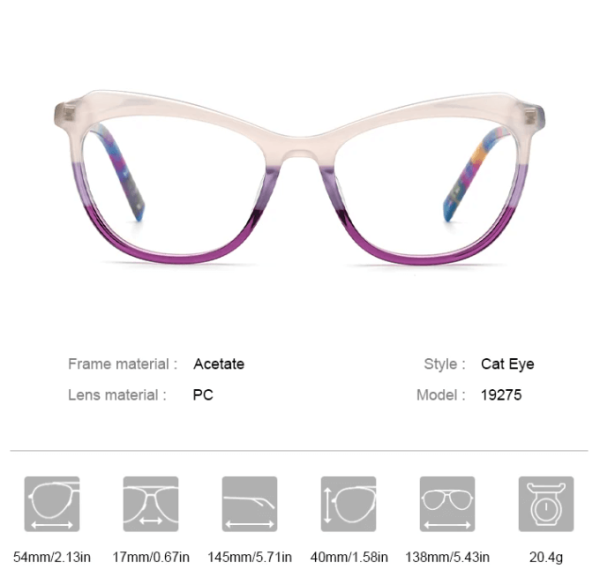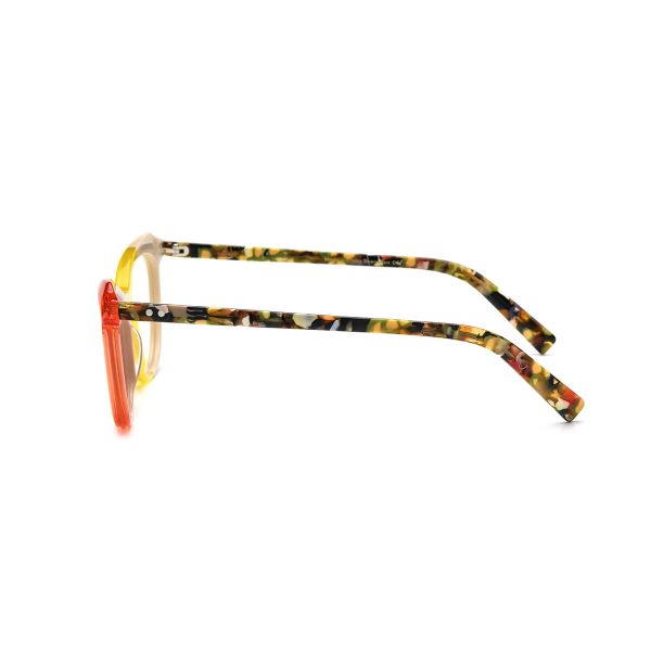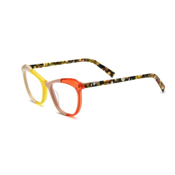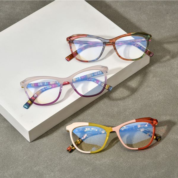 This acetate cat eye glasses frame for women, designed by brand designers, offers a variety of fashionable color options, including orange-yellow, pink, purple, and colorful stripes. The transparent material exudes an elegant style, while the vibrant colors add vitality to your appearance. Ideal for both myopic individuals and fashion-conscious women, these colors each have their own unique charm, catering to the individual preferences of different wearers and adding a bright touch to your everyday style.