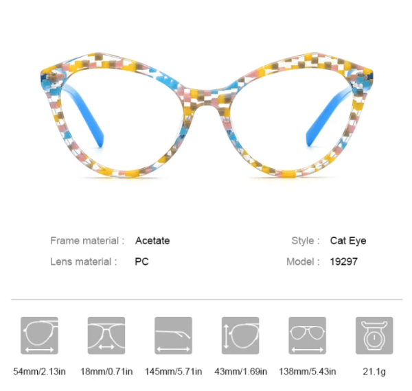 This designer transparent cat-eye glasses frame presents the unique charm of leopard flower color. The elegant cat-eye shape combined with transparent material creates an atmosphere where fashion and personality coexist. The choice of leopard flower color allows you to stand out in the crowd, showcasing your unique taste and sense of style. This eyeglasses frame can be used not only for myopia prescription but also paired with optical lenses, adding highlights to your visual experience.