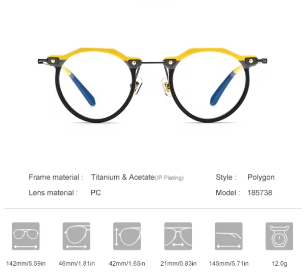 This 2022 new acetate titanium glasses frame features a retro polygon design, suitable for both men and women. Crafted from a combination of acetate and titanium, it offers lightweight durability. Whether for everyday wear or special occasions, it showcases a unique sense of fashion. Combining vintage and modern styles, it adds charm to your eyes.