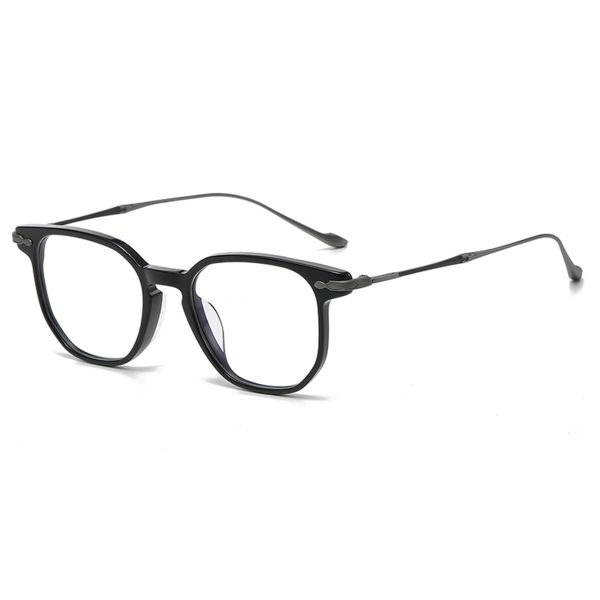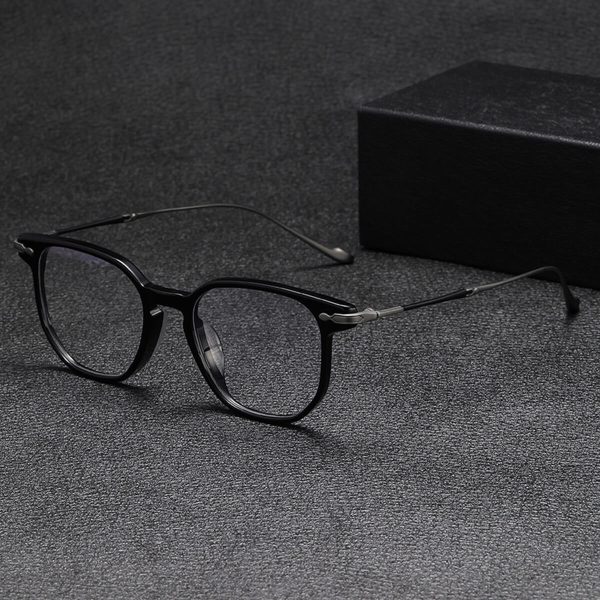 This Titanium Acetate Polygon Eyewear combines timeless style with modern sophistication. Crafted from premium titanium and acetate materials, these eyeglasses frames offer a perfect balance of durability and lightweight comfort, ensuring a luxurious wearing experience.
