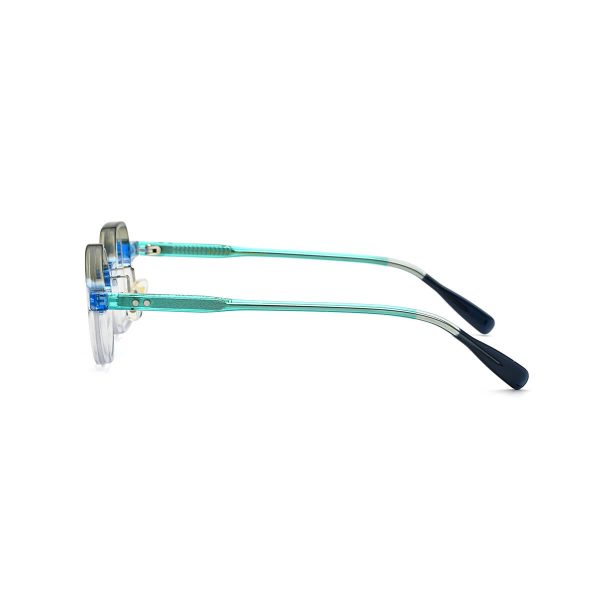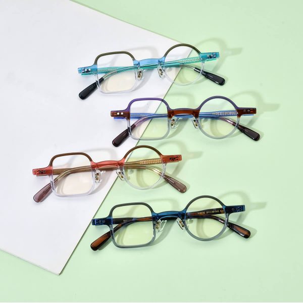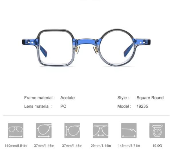 This ACETATE glasses frame features a unique blend of masculine square and feminine round styles. The right lens showcases a classic square silhouette, conveying a sense of stability and strength for men, while the left round design accentuates the softness and elegance for women. This contrasting combination creates a unique sense of symmetry, ideal for individuals with myopia. Offering not just optical prescription functionality but also catering to personalized fashion needs, it’s set to be a trendsetter for 2022