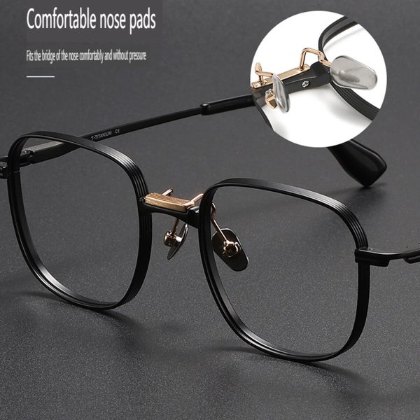 The Saga Square Titanium Vintage Frame is a new square-shaped myopia eyeglass frame, featuring a vintage unisex wide-edged design, which is very suitable for high diopter glasses users. This pair of glasses incorporates a fresh and chic vintage style and, thanks to its wide-edge design, provides a larger visual coverage.