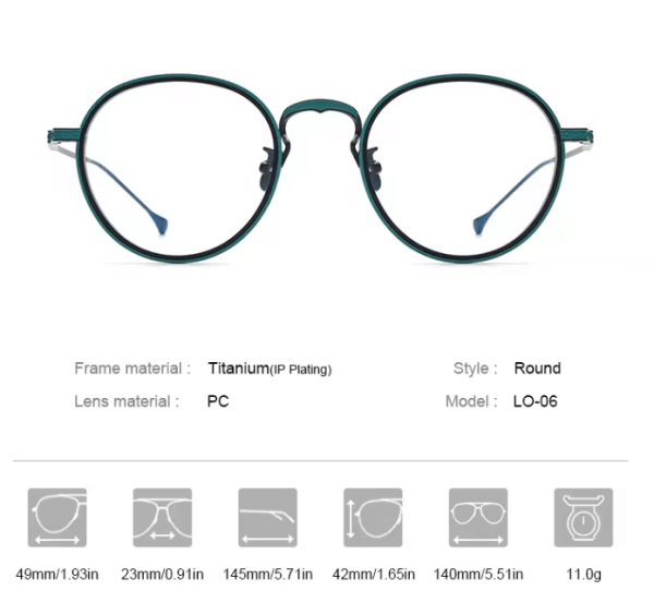 This full-rim pure titanium glasses frame is suitable for both men and women, featuring a stylish and generous design with a round frame that adds a unique touch. It’s perfect for those with myopia and can also be paired with optical prescription lenses. The full-rim design ensures durability and provides reliable support along with a comfortable wearing experience. Whether for everyday wear or business occasions, it showcases your personality and taste.
