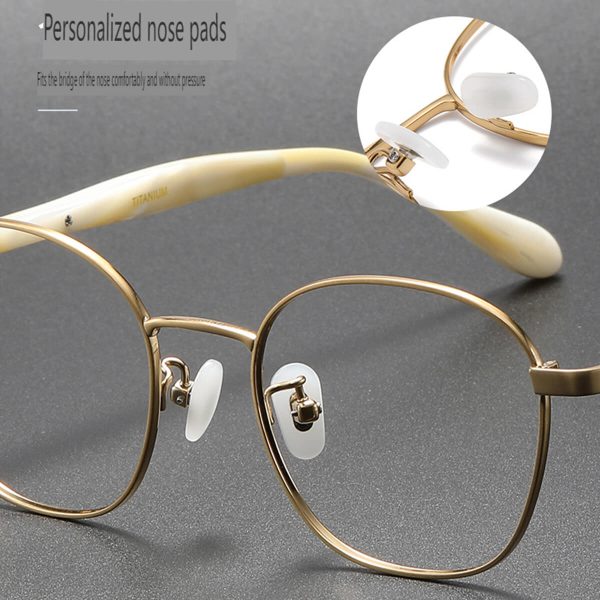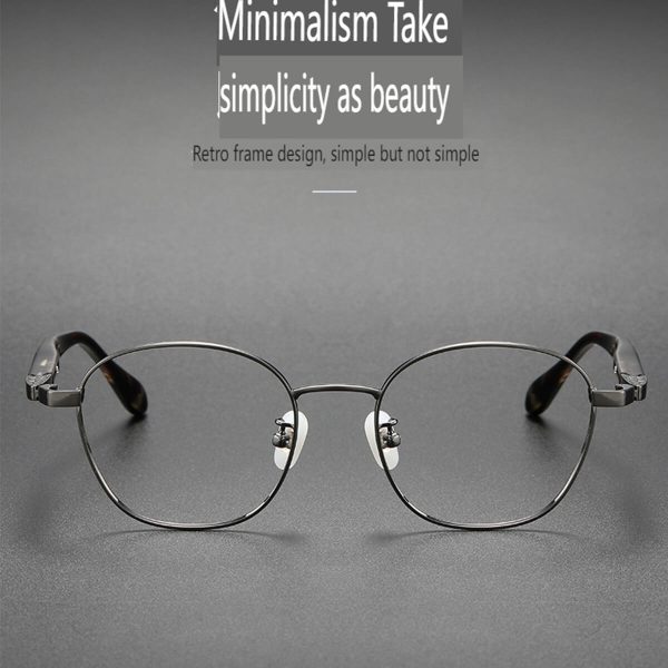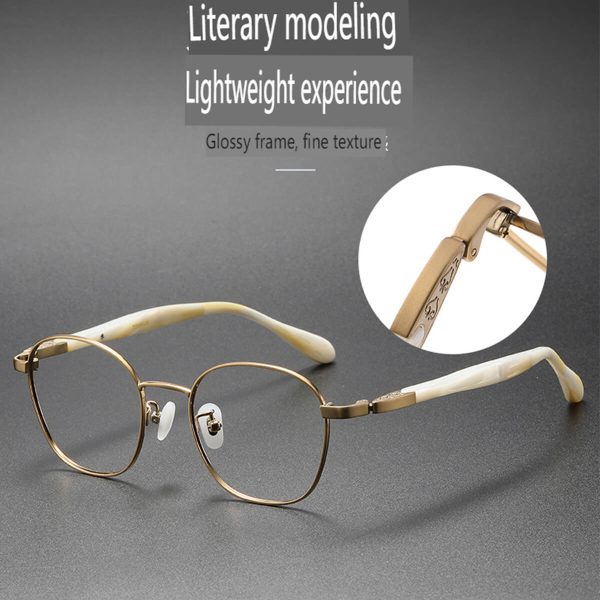 Discover the captivating charm of Shimmering Round Titanium Acetate Frames. Combining the sturdiness of titanium frame with acetate armrests for extended comfort, these glasses meet style and functionality in harmony.