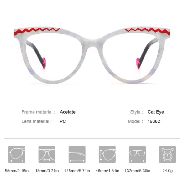 This 2024 trendy Sinjin Acetate cat eye glasses frame is an ideal choice for women’s fashionable eyewear. It’s crafted from high-quality acetate material, lightweight and comfortable, while showcasing a unique design style. These glasses are suitable for wearing in daily life and also serve as an accessory to elevate overall fashion sense. Whether you’re at work or social gatherings, this stylish eyewear adds confidence and charm to your look.