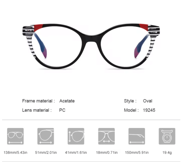 This acetate glasses frame combines retro vintage oval eyeglasses design, suitable for those with myopia. The striped pattern on both sides of the frame adds a modern touch to the classic style. Whether for men or women, it exudes elegance and sophistication. adding a unique personality and charm to your outfit.