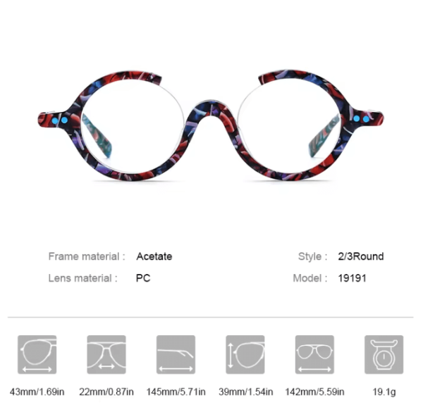 This new vintage retro round acetate optical glasses frame showcases a classic yet fashionable style. Made from high-quality acetate material, it is lightweight and comfortable. The 2/3 round frames design exudes a retro vibe with a modern twist, perfectly showcasing your personality and taste.