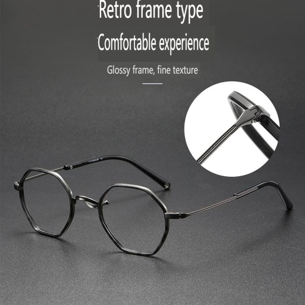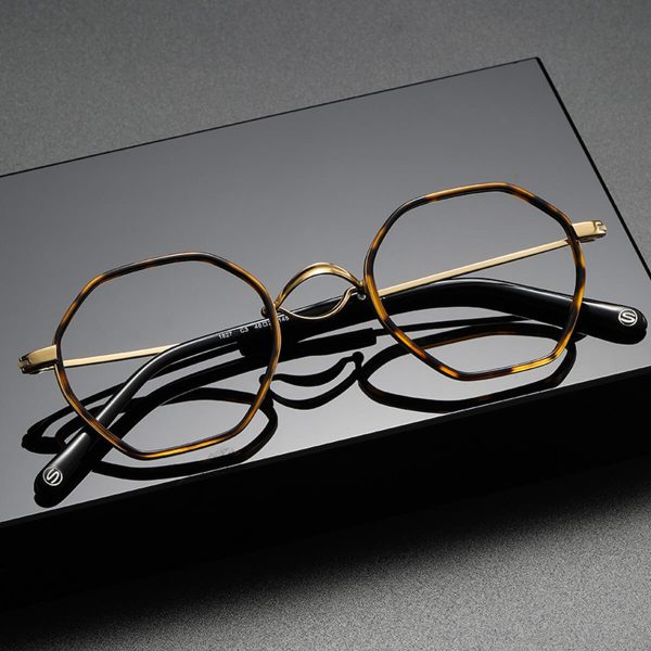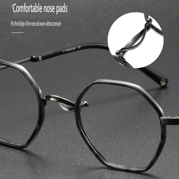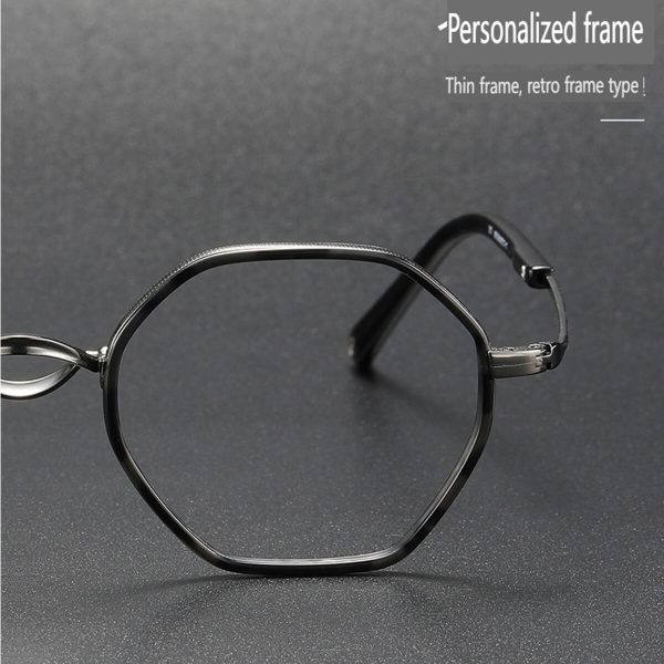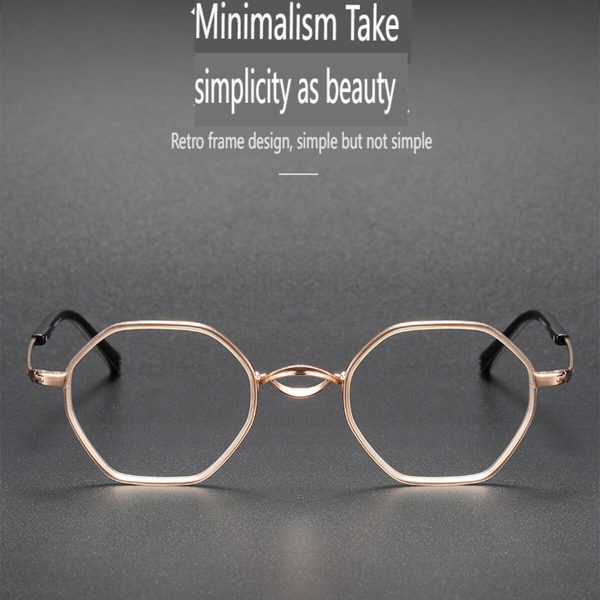 Look beyond with Visionary Vintage Polygon Pure Titanium Frames. Manifest your unique style with these fashionable pure titanium frame glasses, featuring a comfortable nose pad and a retro-cool aesthetic.
